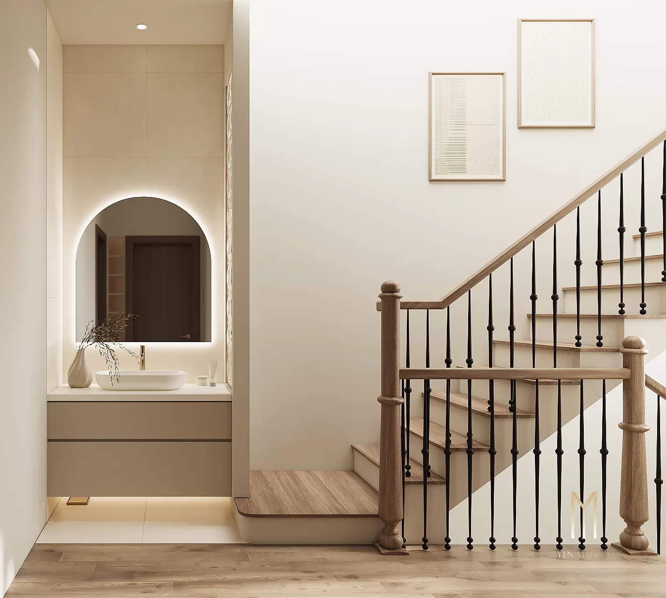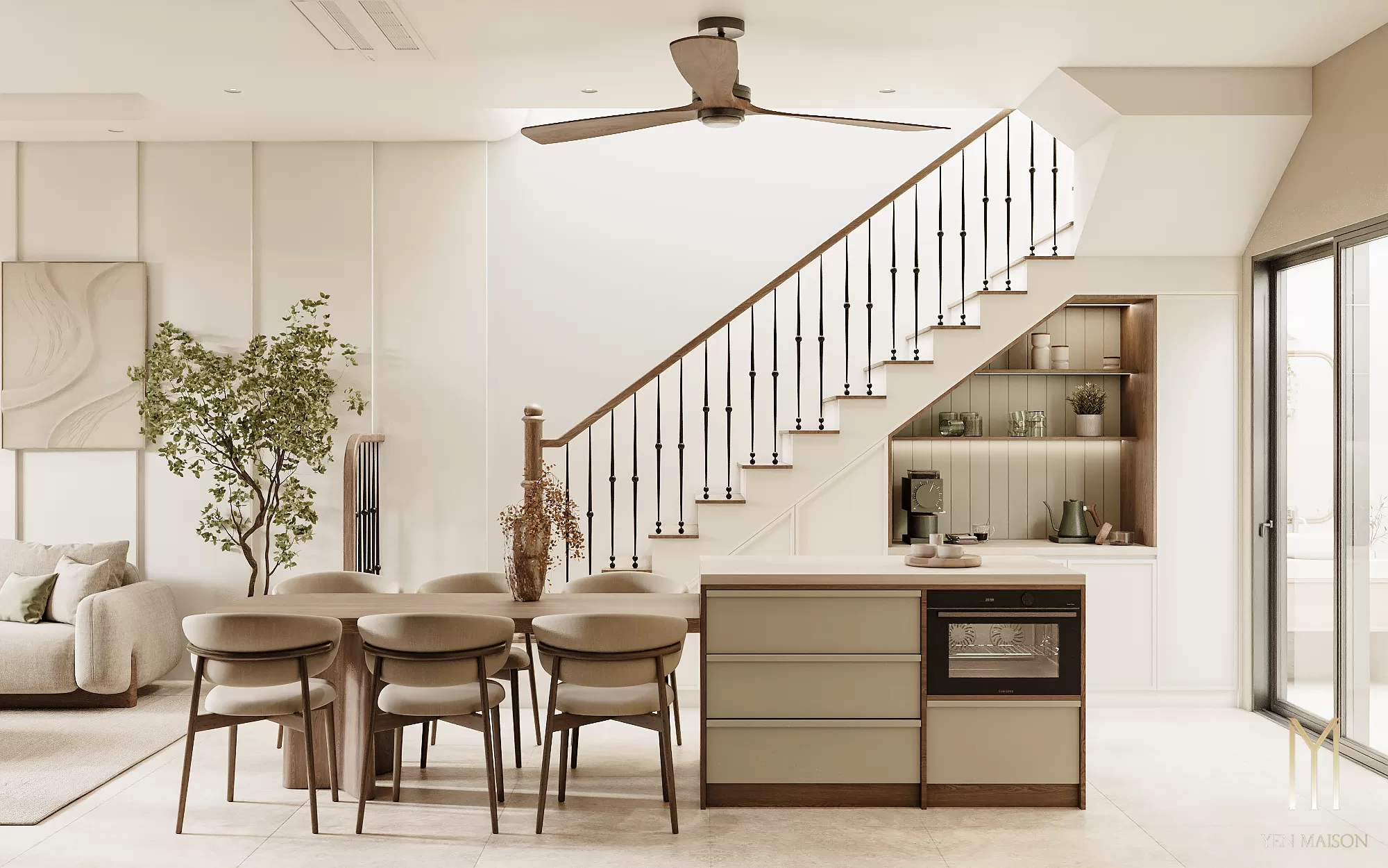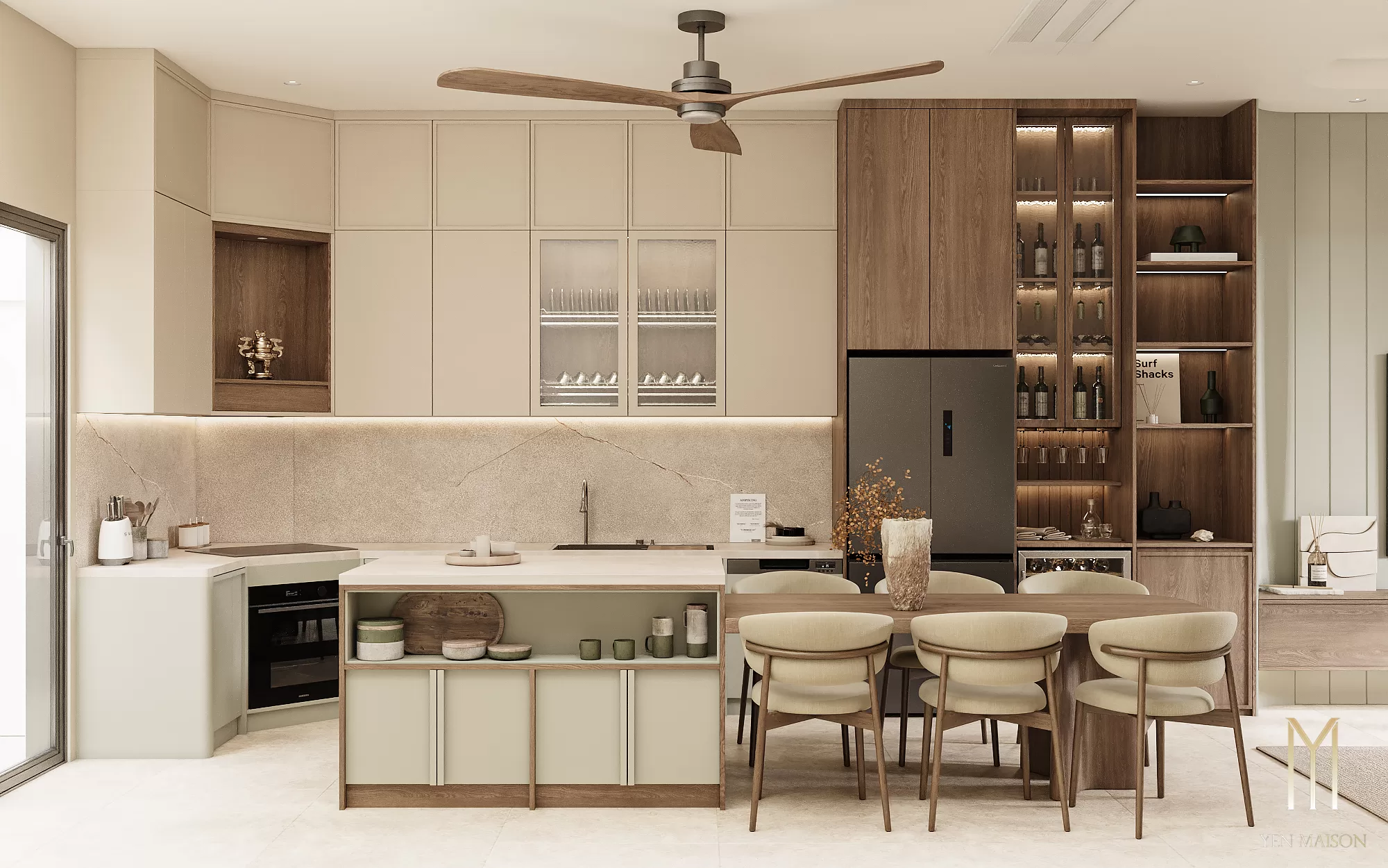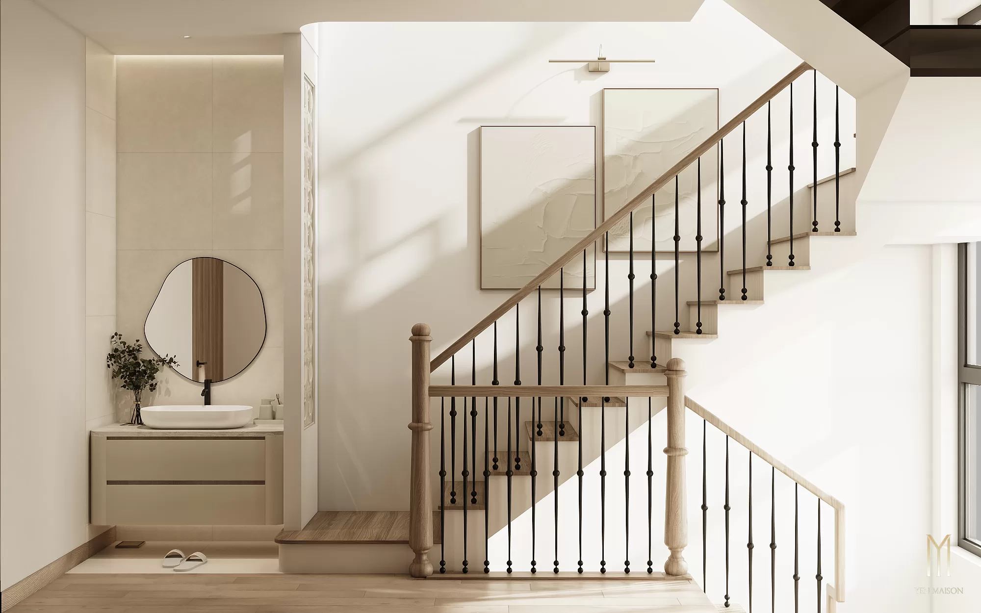 Thiết kế mang phong cách hiện đại với gam màu kem be dịu nhẹ, đem đến vẻ đẹp nhẹ nhàng, bền vững.