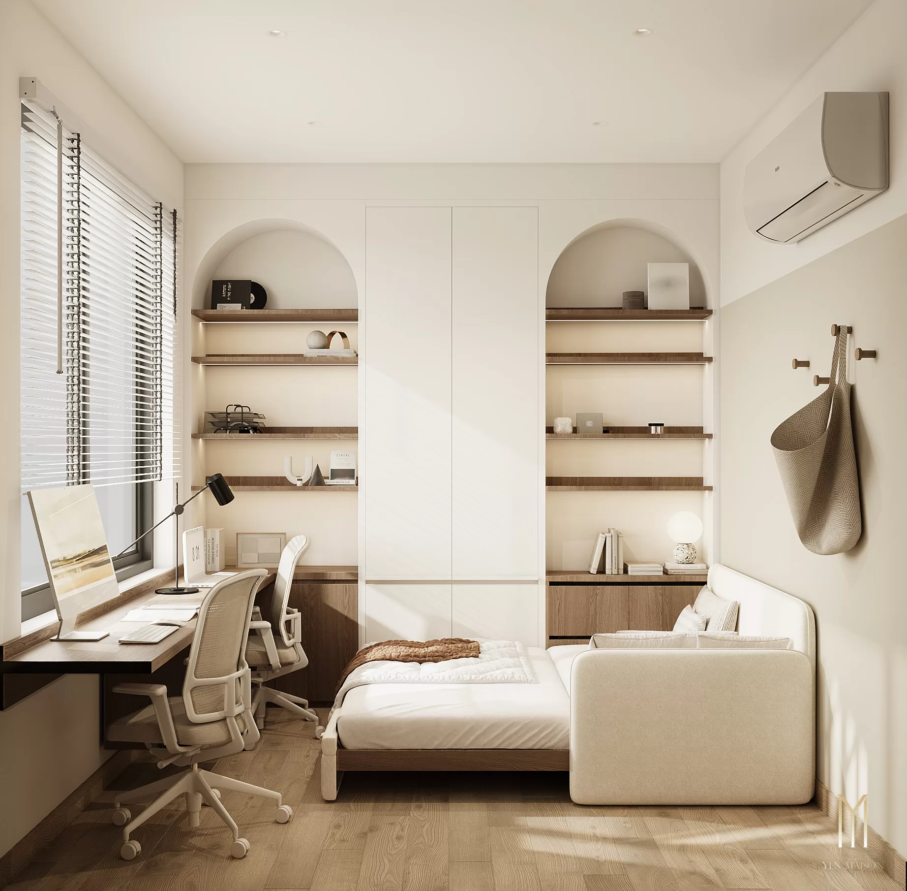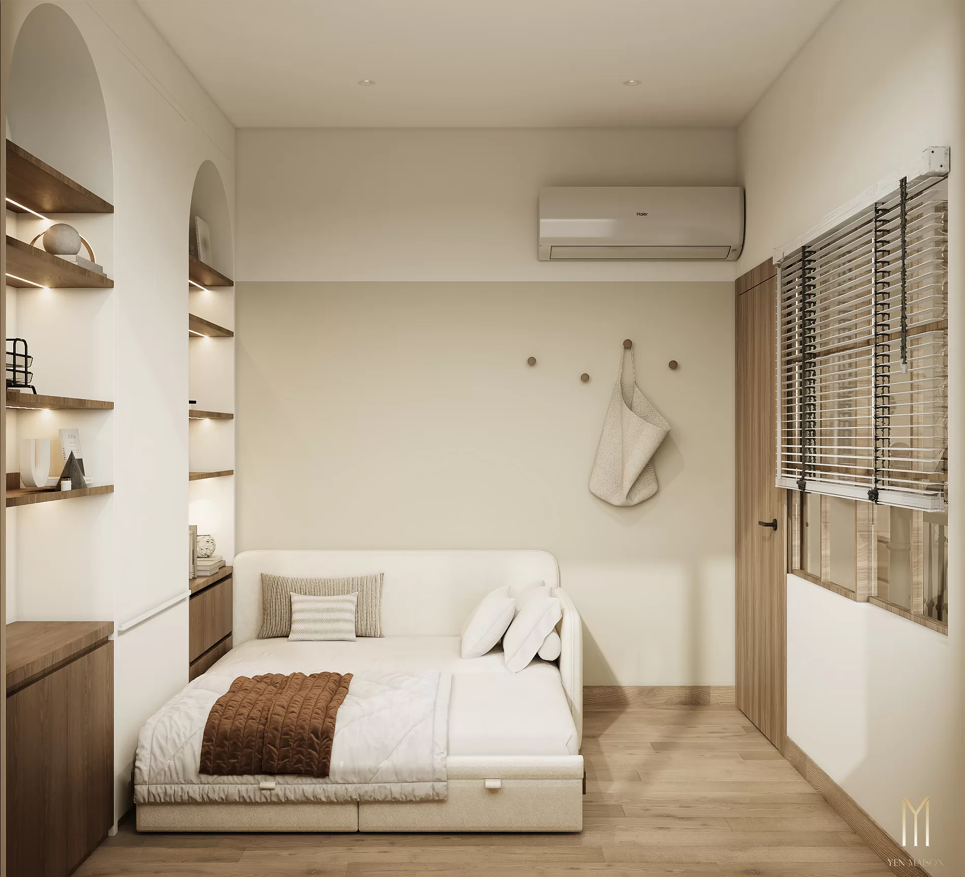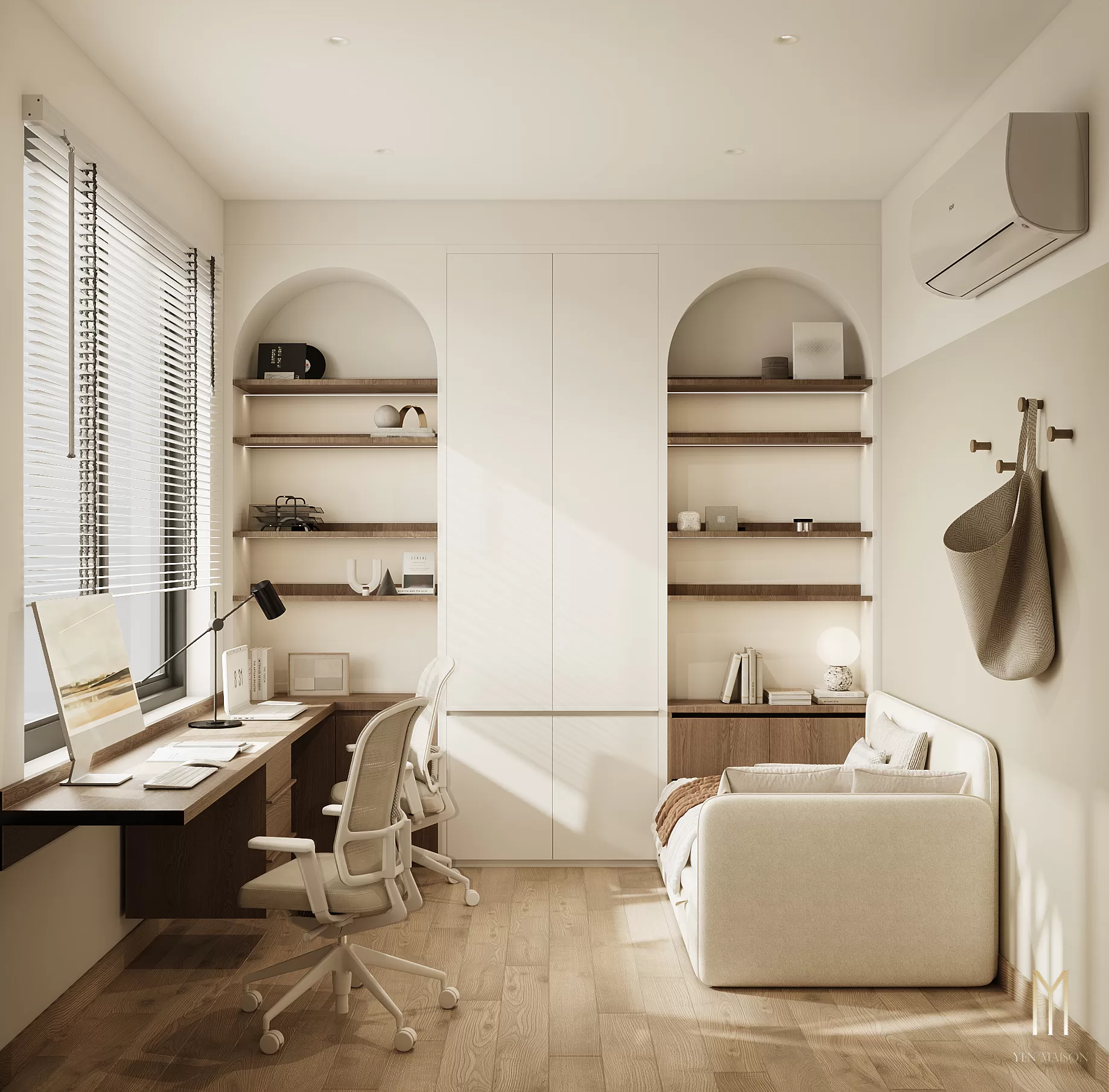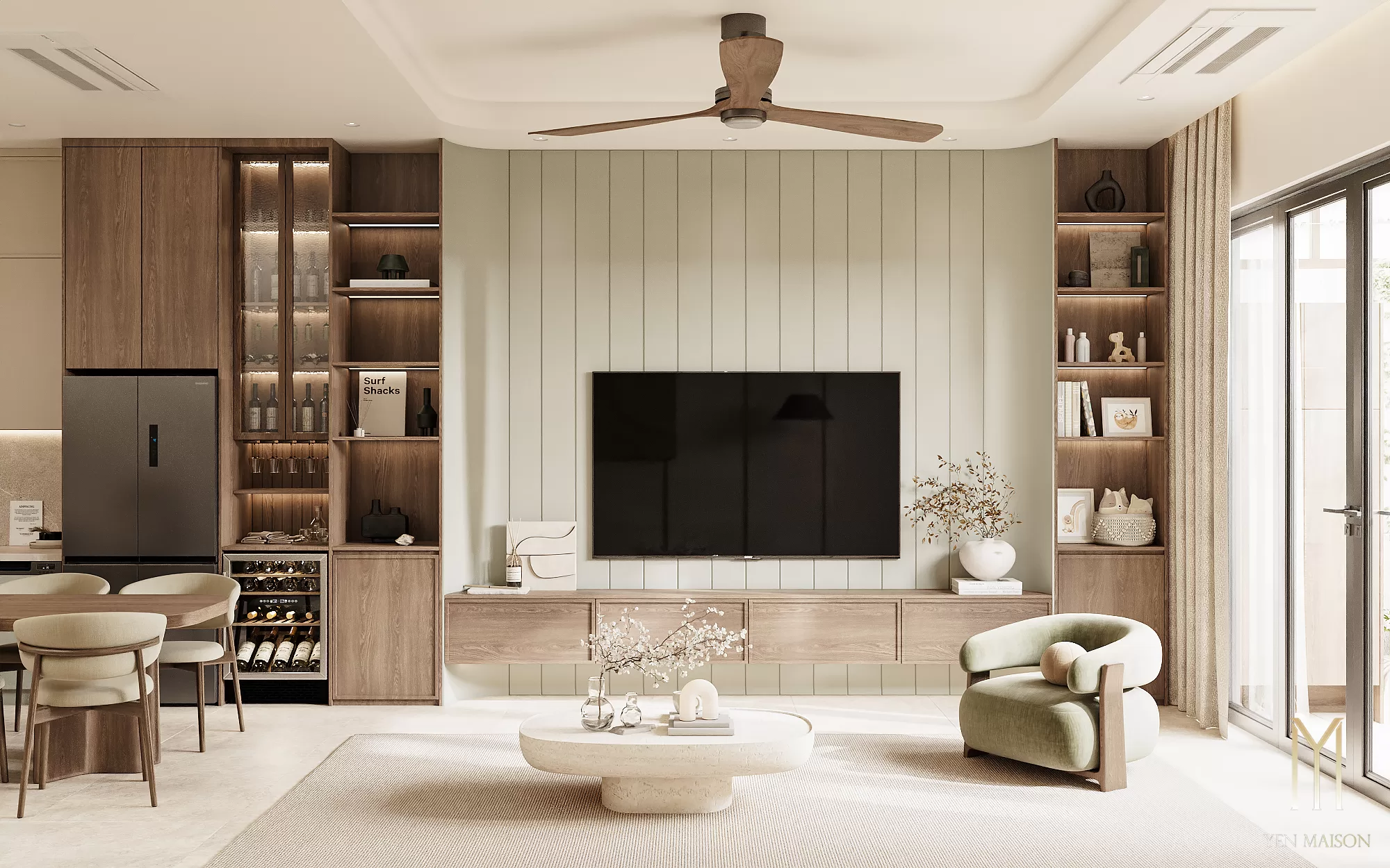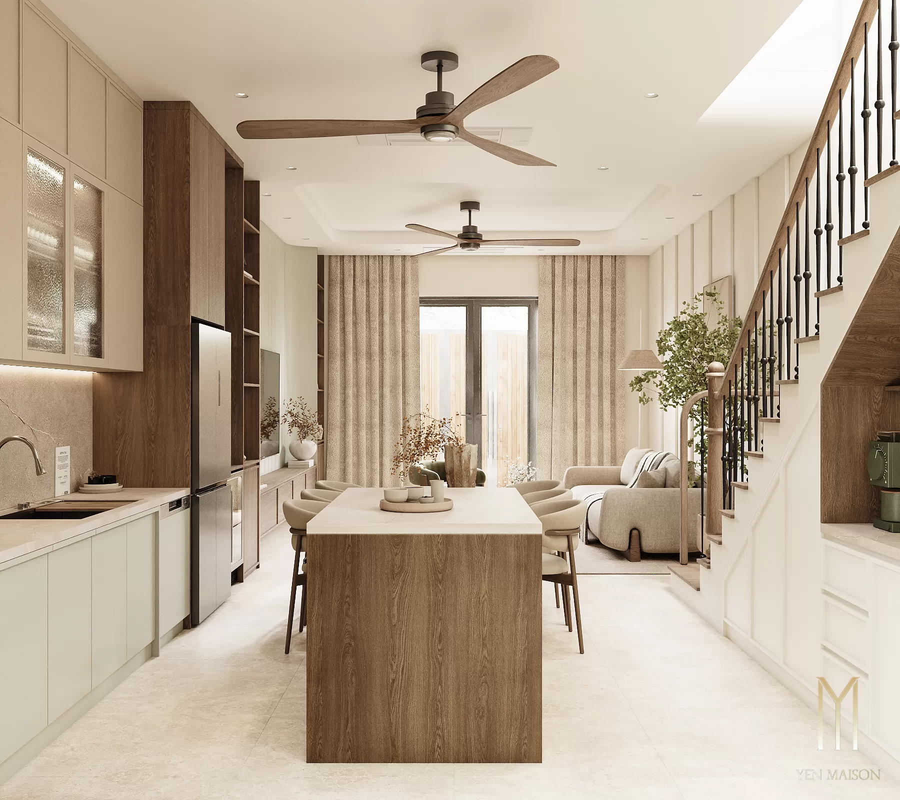 Thiết kế mang phong cách hiện đại với gam màu kem be dịu nhẹ, đem đến vẻ đẹp nhẹ nhàng, bền vững.