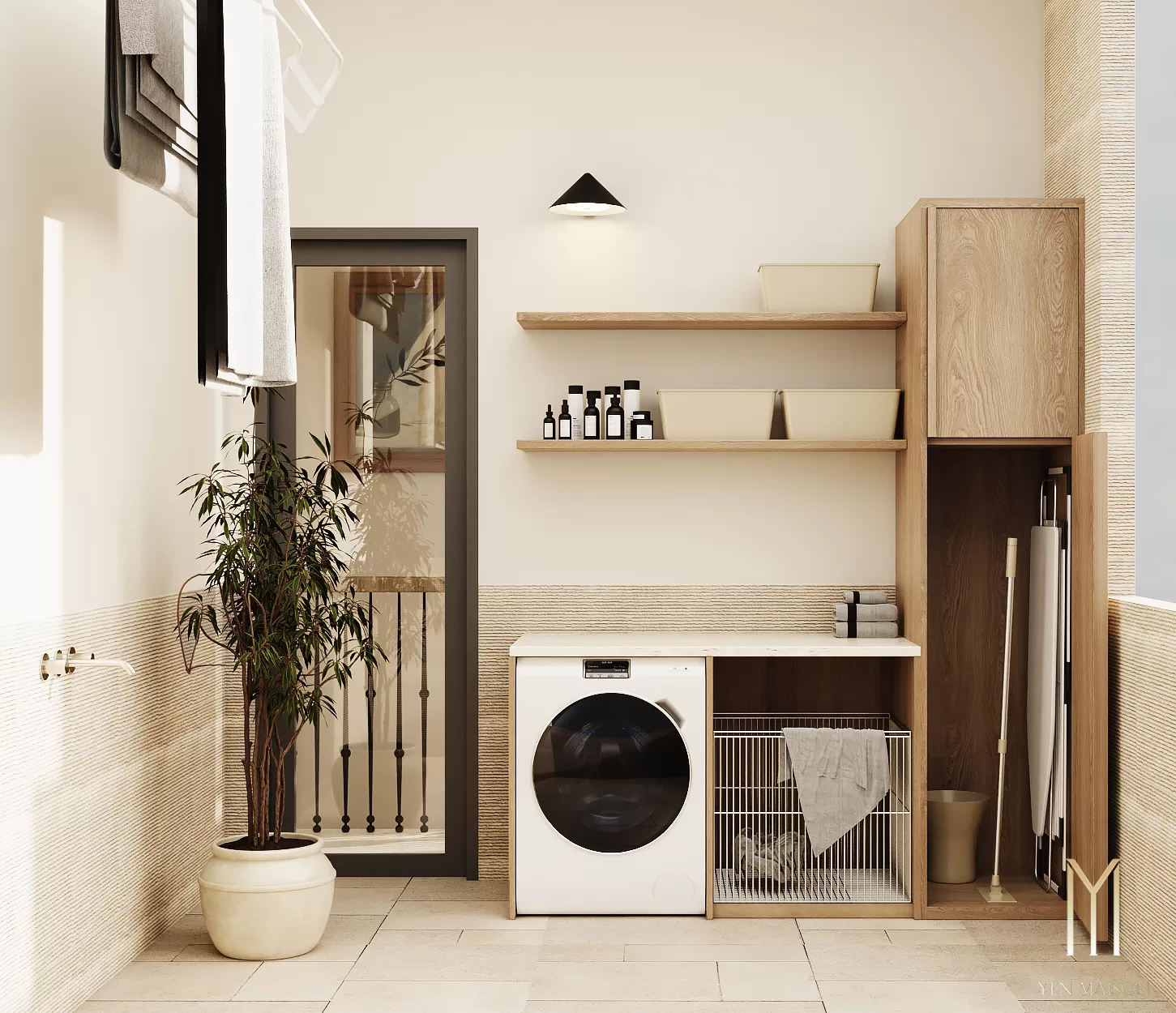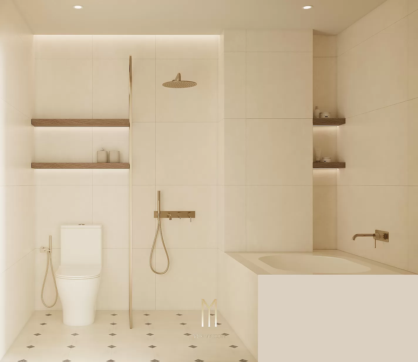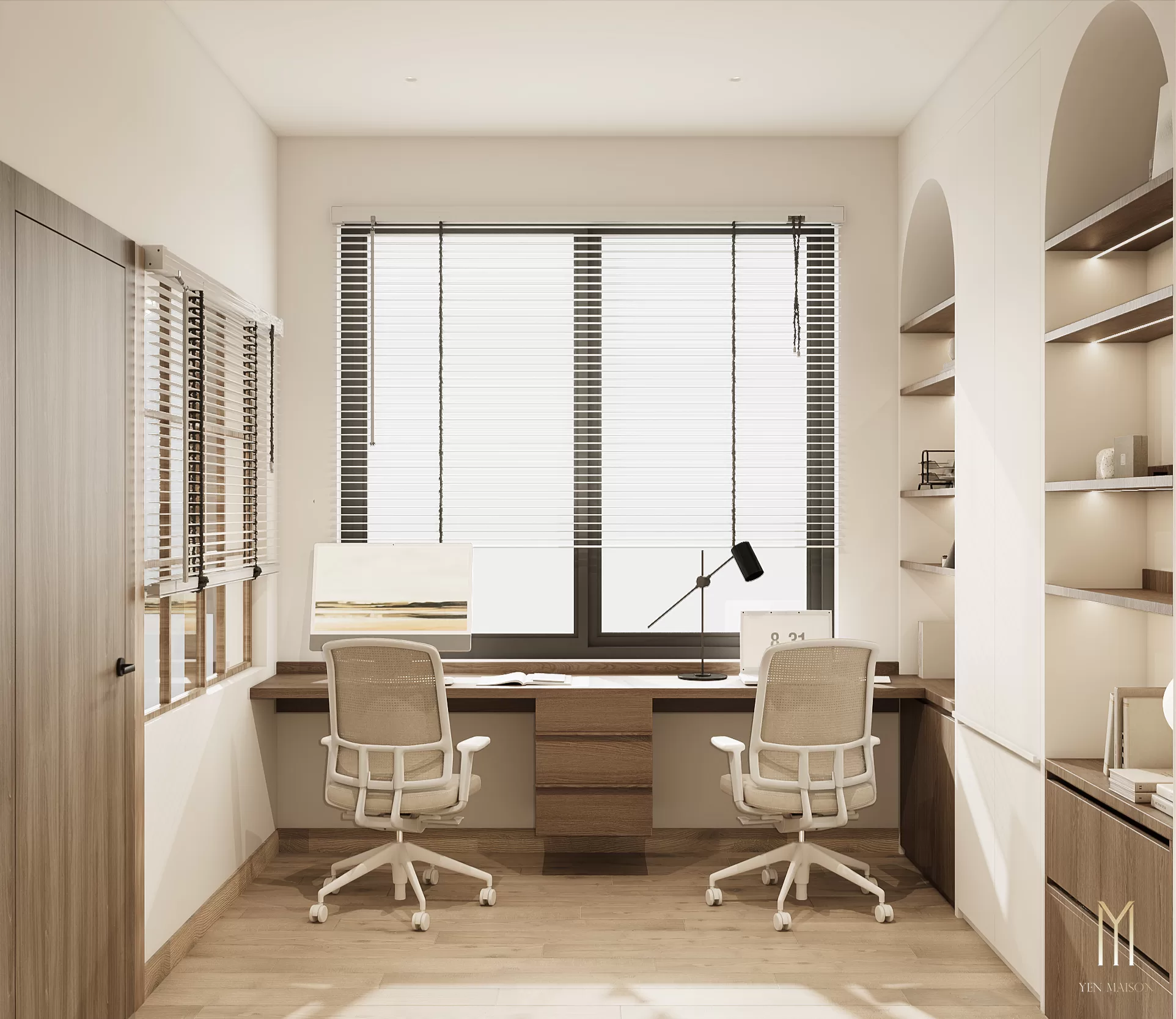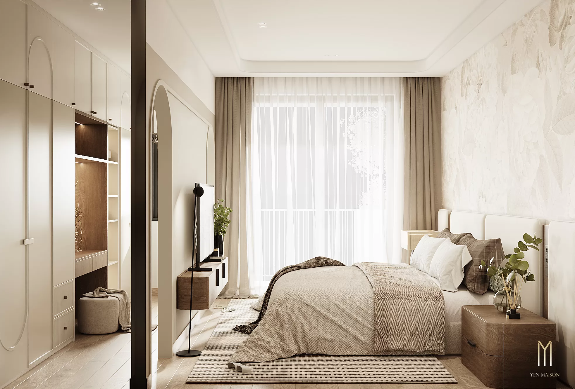Thiết kế mang phong cách hiện đại với gam màu kem be dịu nhẹ, đem đến vẻ đẹp nhẹ nhàng, bền vững.