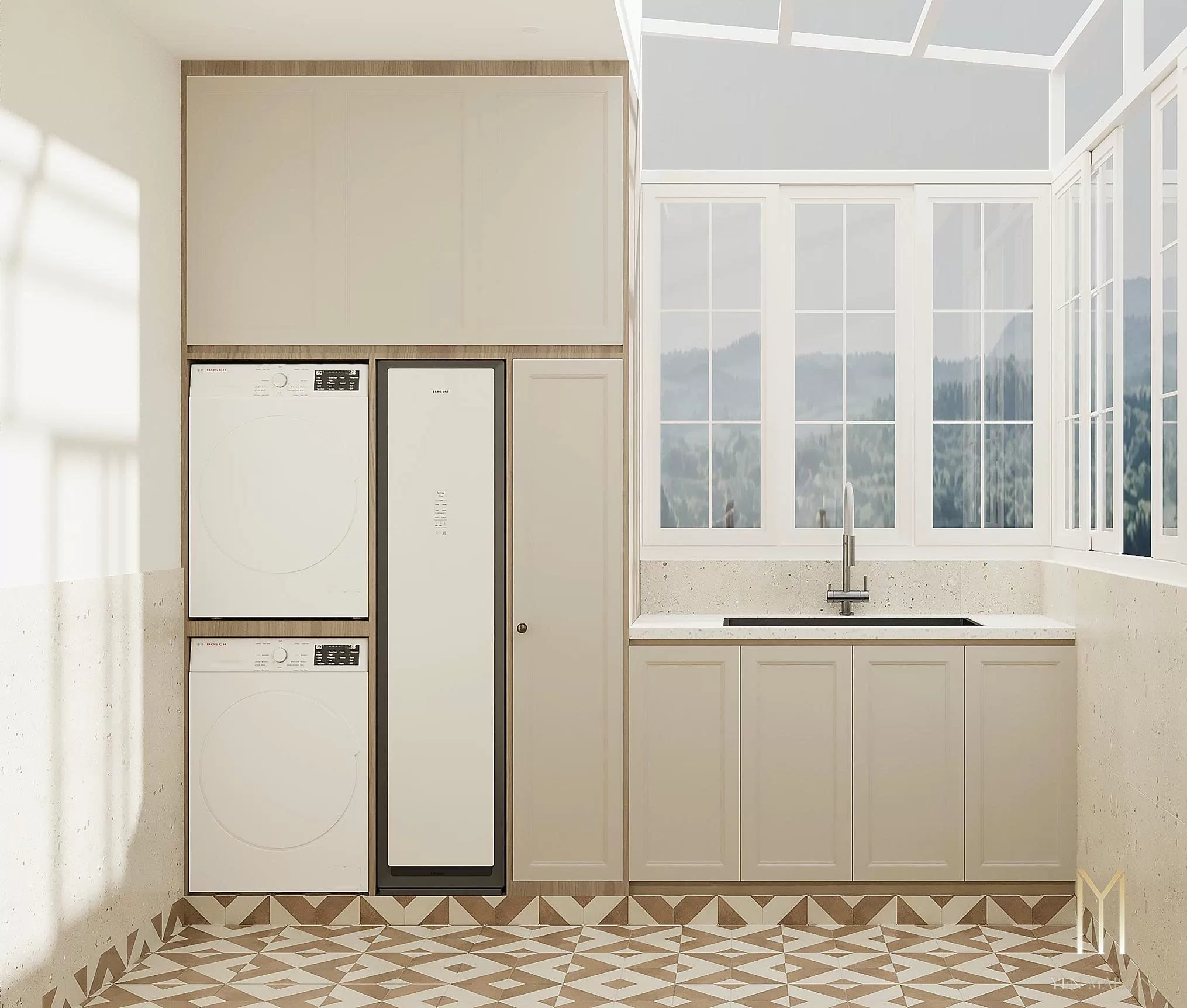 Vẫn là ngôn ngữ thiết kế hiện đại đặc trưng kết hợp với một chút cảm hứng Farmhouse để không gian trở nên ấm áp và gần gũi.