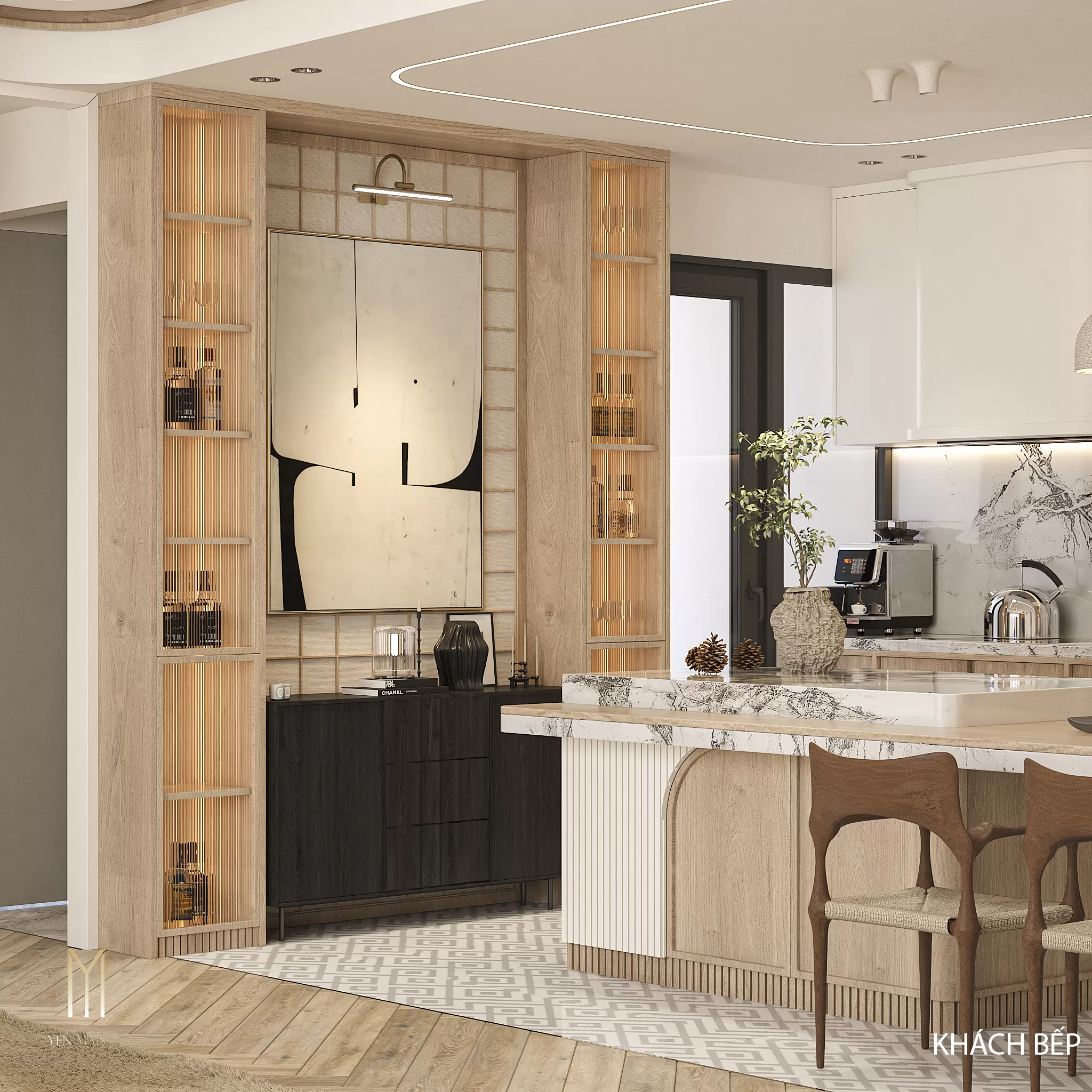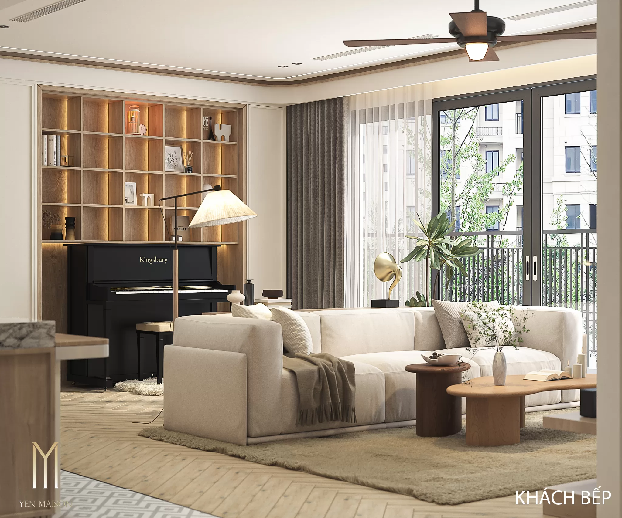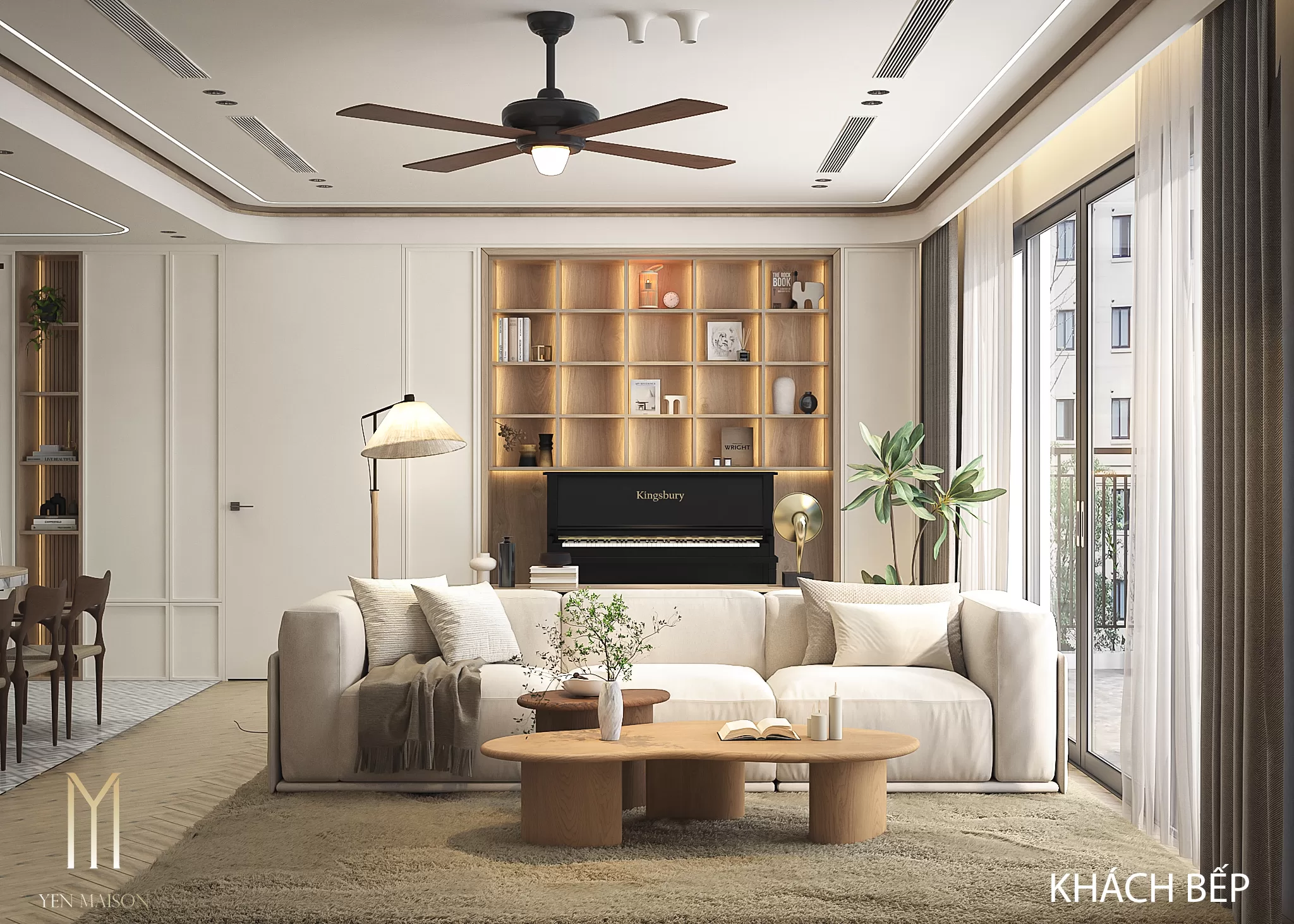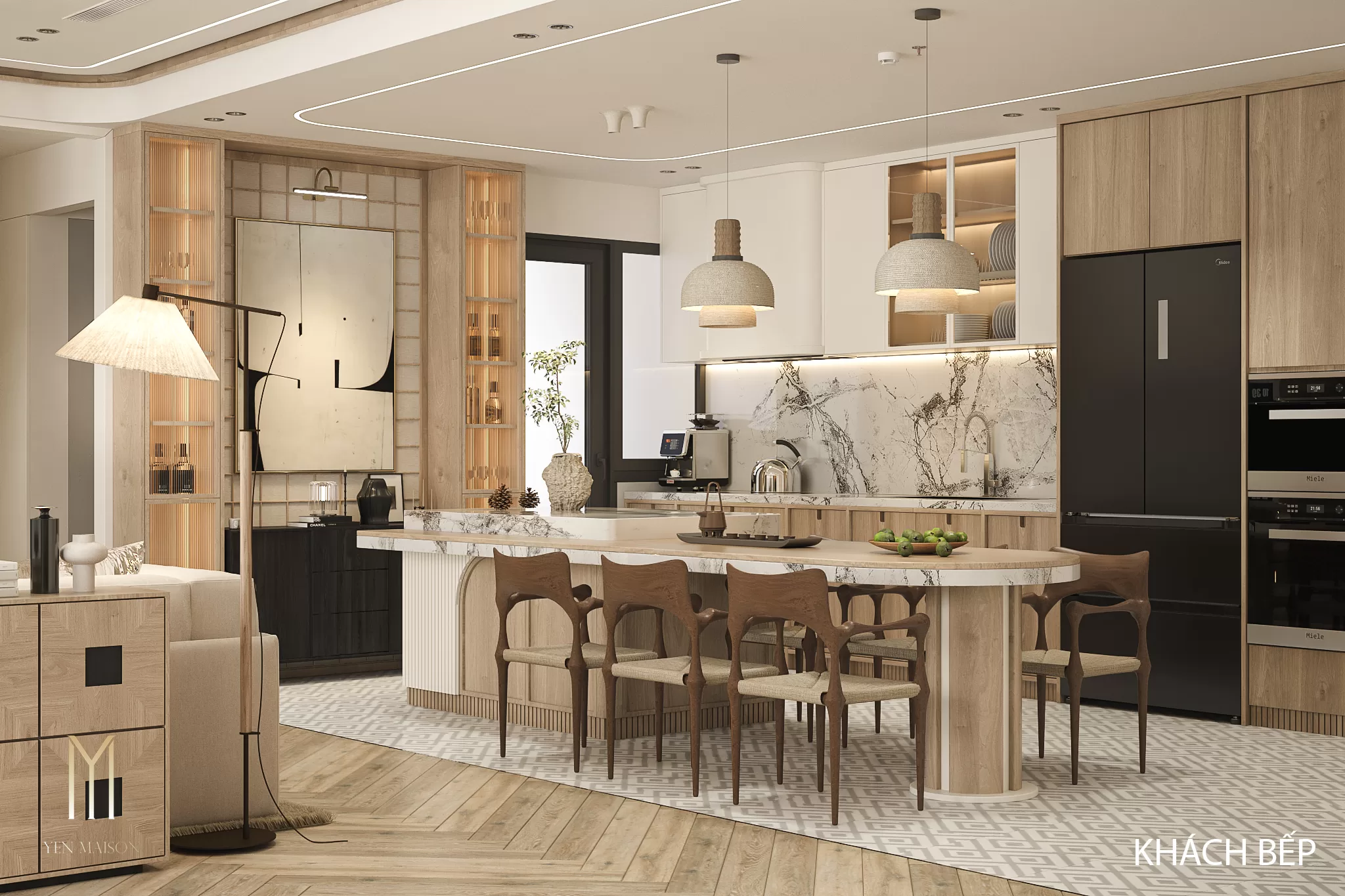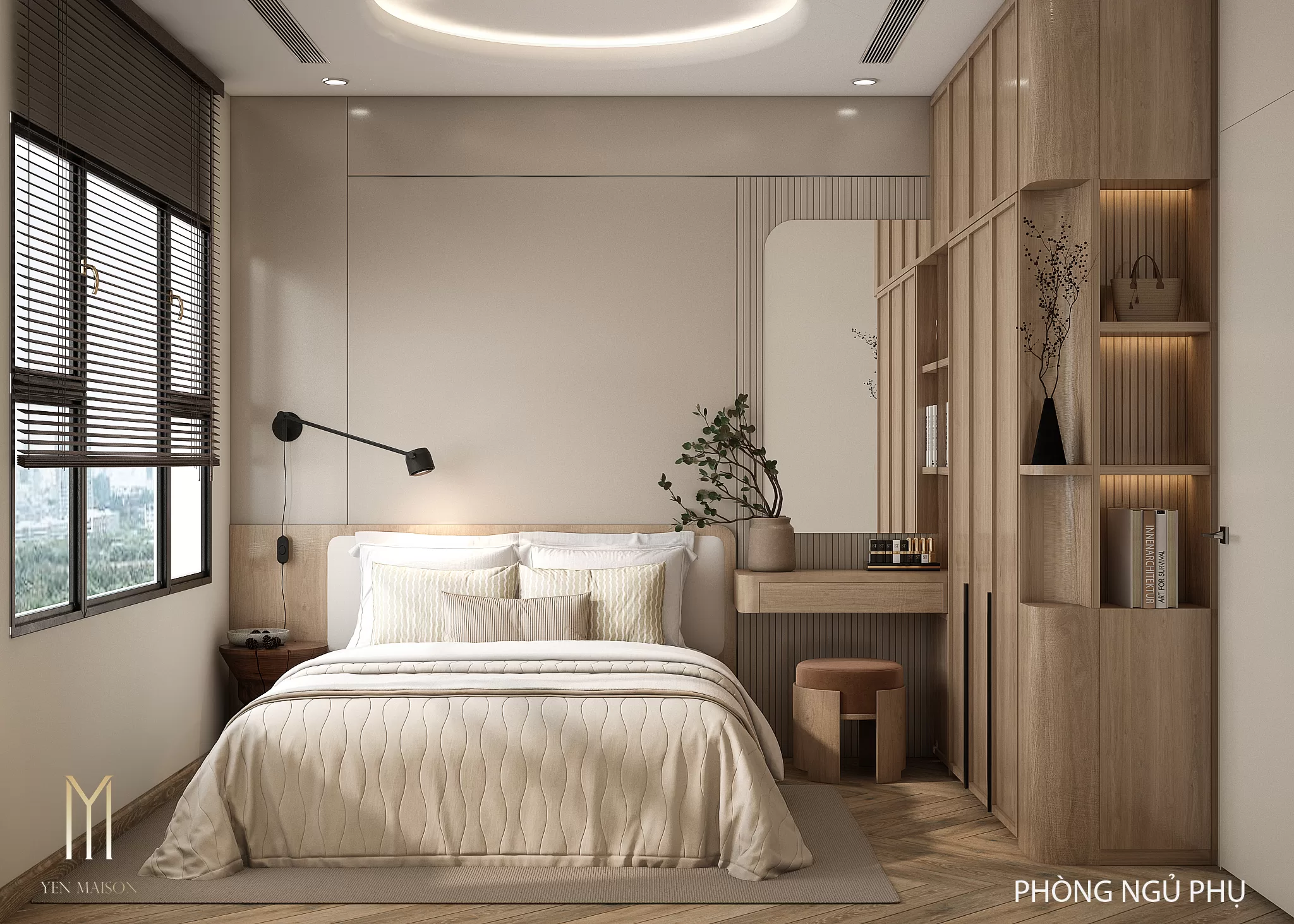 Với phong cách Modern mix Japandi, Yen Maison lựa chọn bảng màu trắng kem kết hợp gỗ sáng để tạo nên một tổng thể nhẹ nhàng và ấm áp. Các chi tiết được tiết chế vừa đủ, để từng góc nhỏ trong nhà đều trở thành khoảng nghỉ dễ chịu sau một ngày bận rộn.