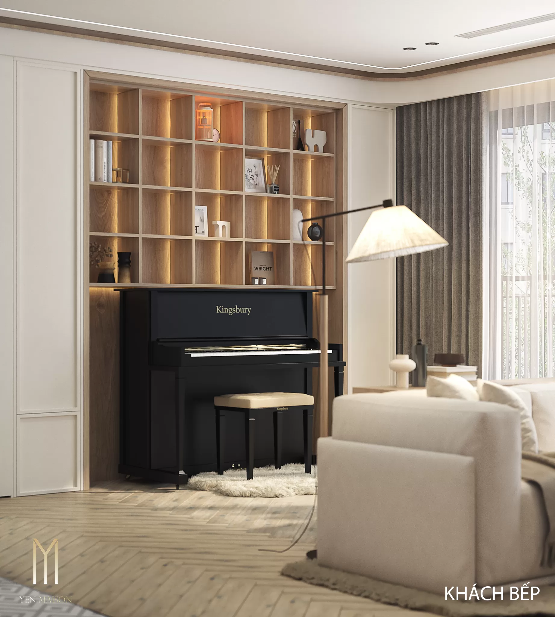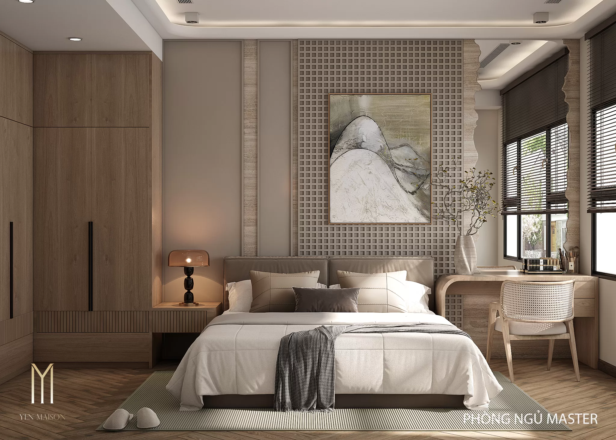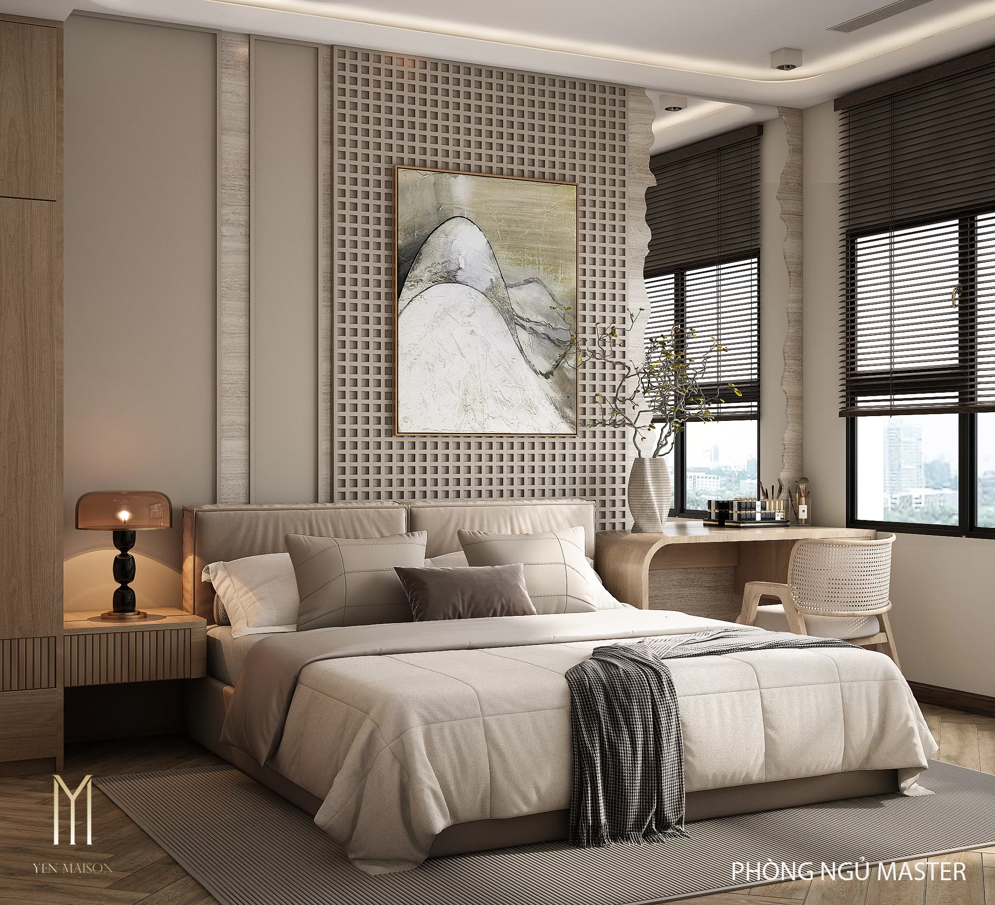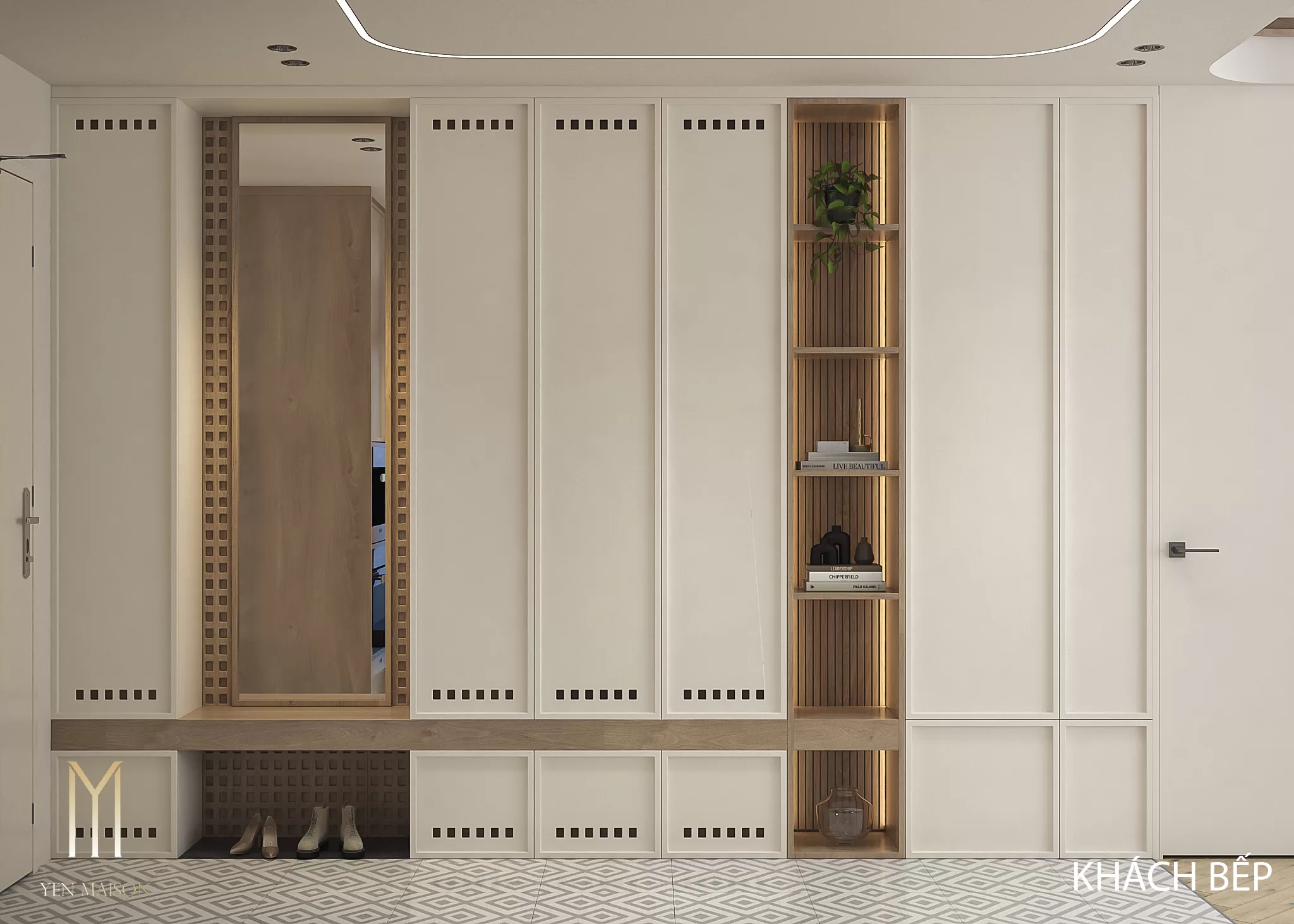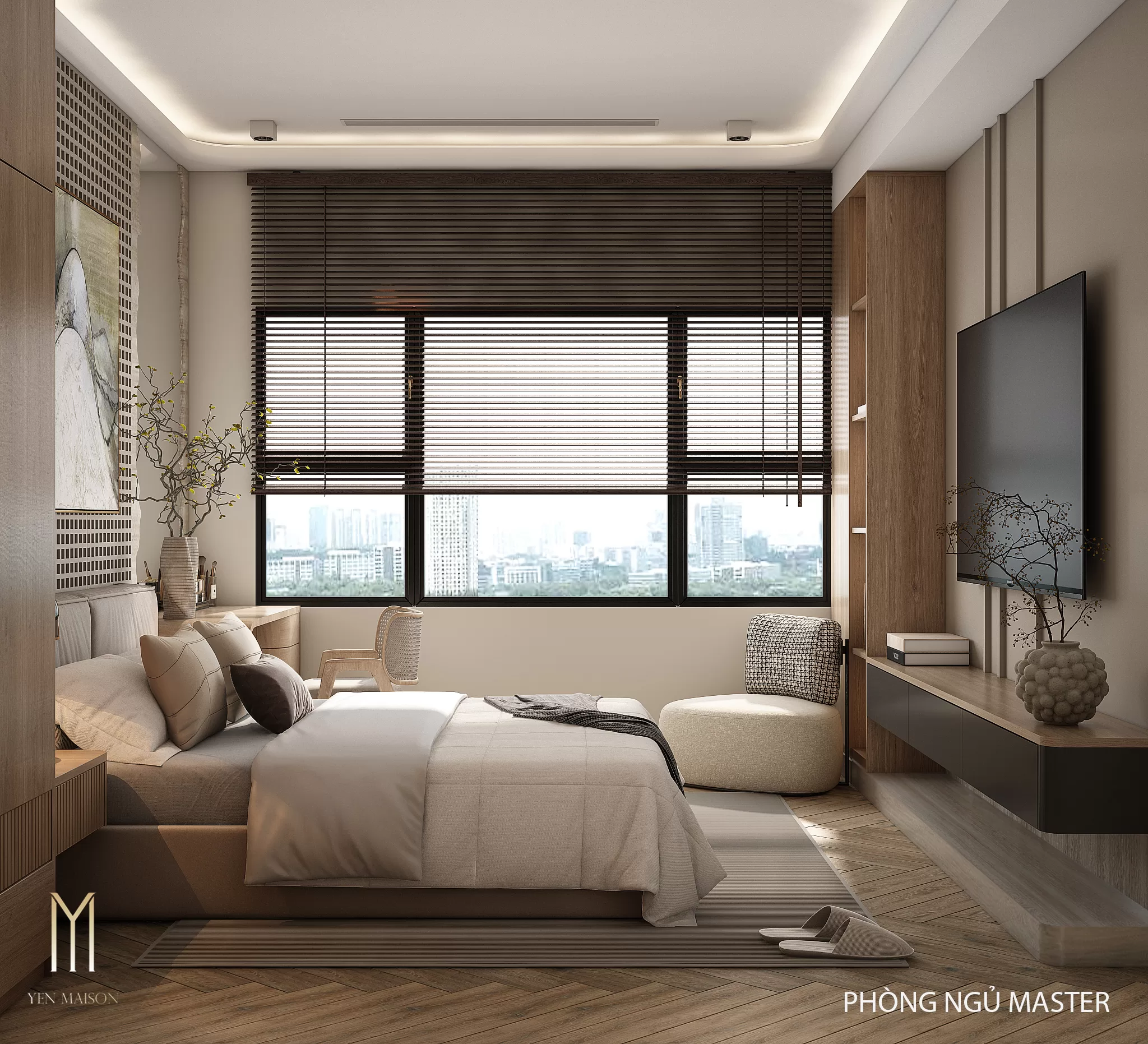 Với phong cách Modern mix Japandi, Yen Maison lựa chọn bảng màu trắng kem kết hợp gỗ sáng để tạo nên một tổng thể nhẹ nhàng và ấm áp. Các chi tiết được tiết chế vừa đủ, để từng góc nhỏ trong nhà đều trở thành khoảng nghỉ dễ chịu sau một ngày bận rộn.