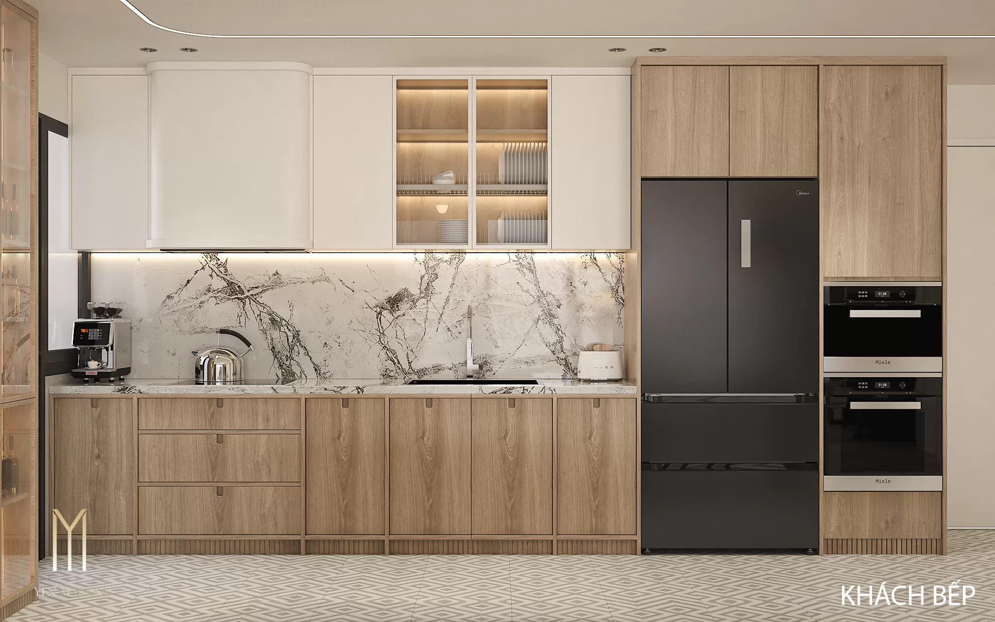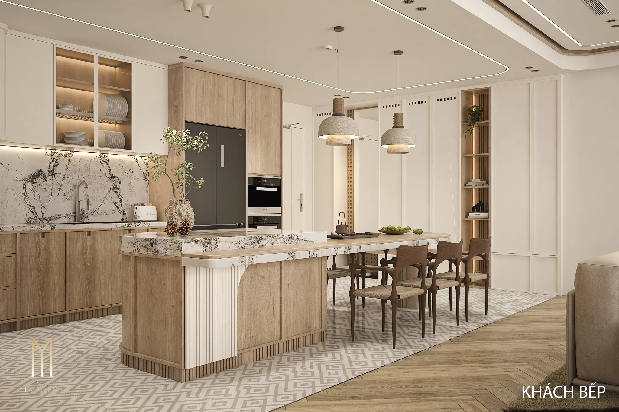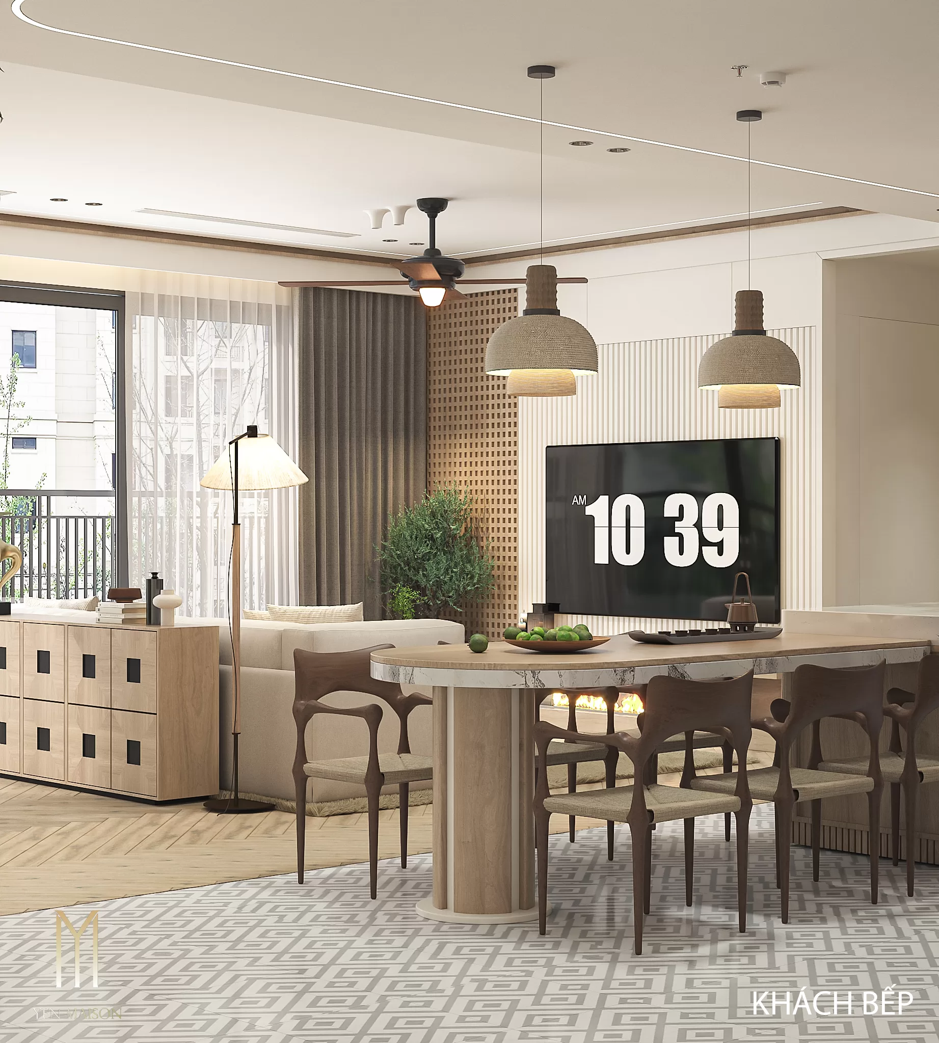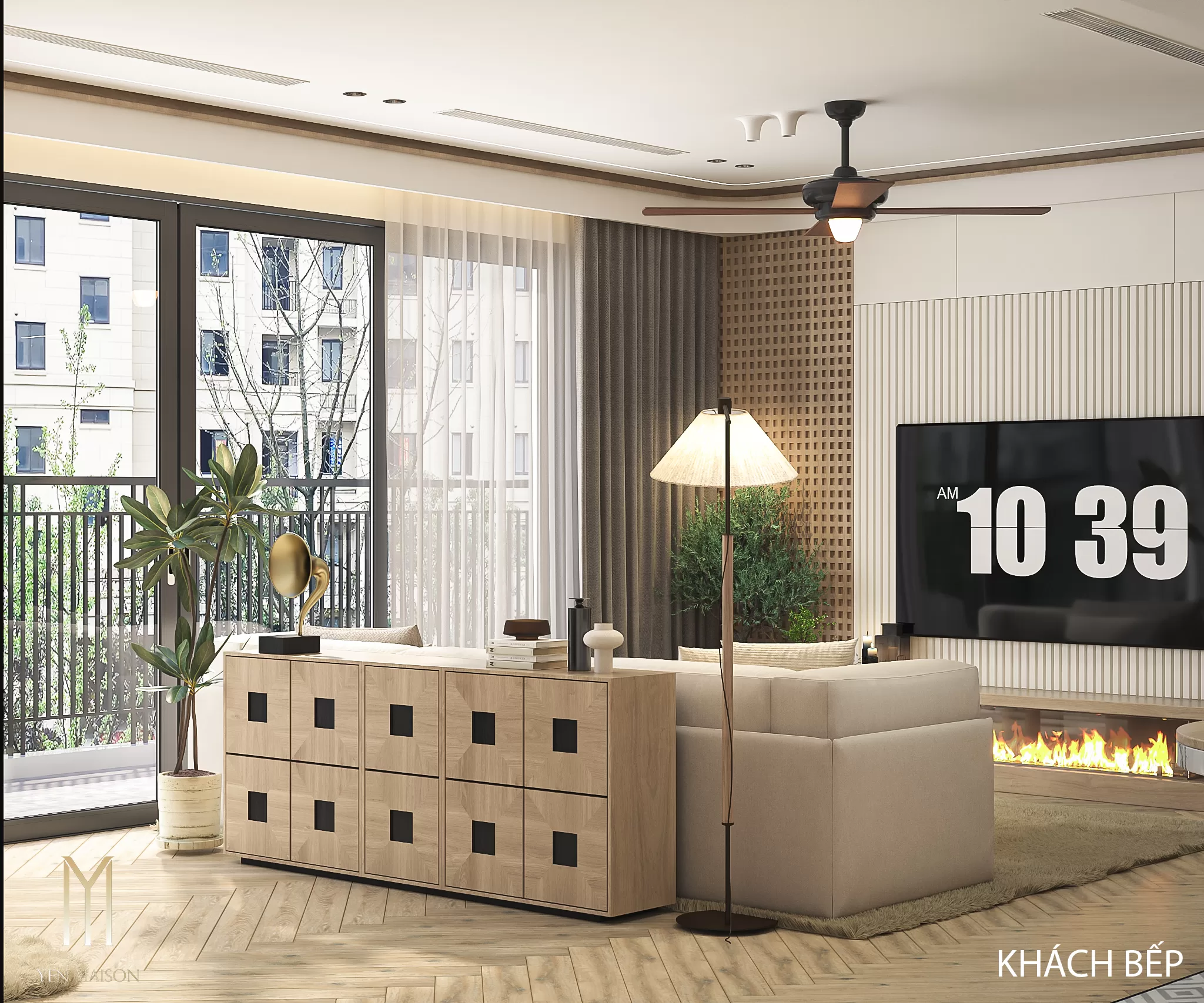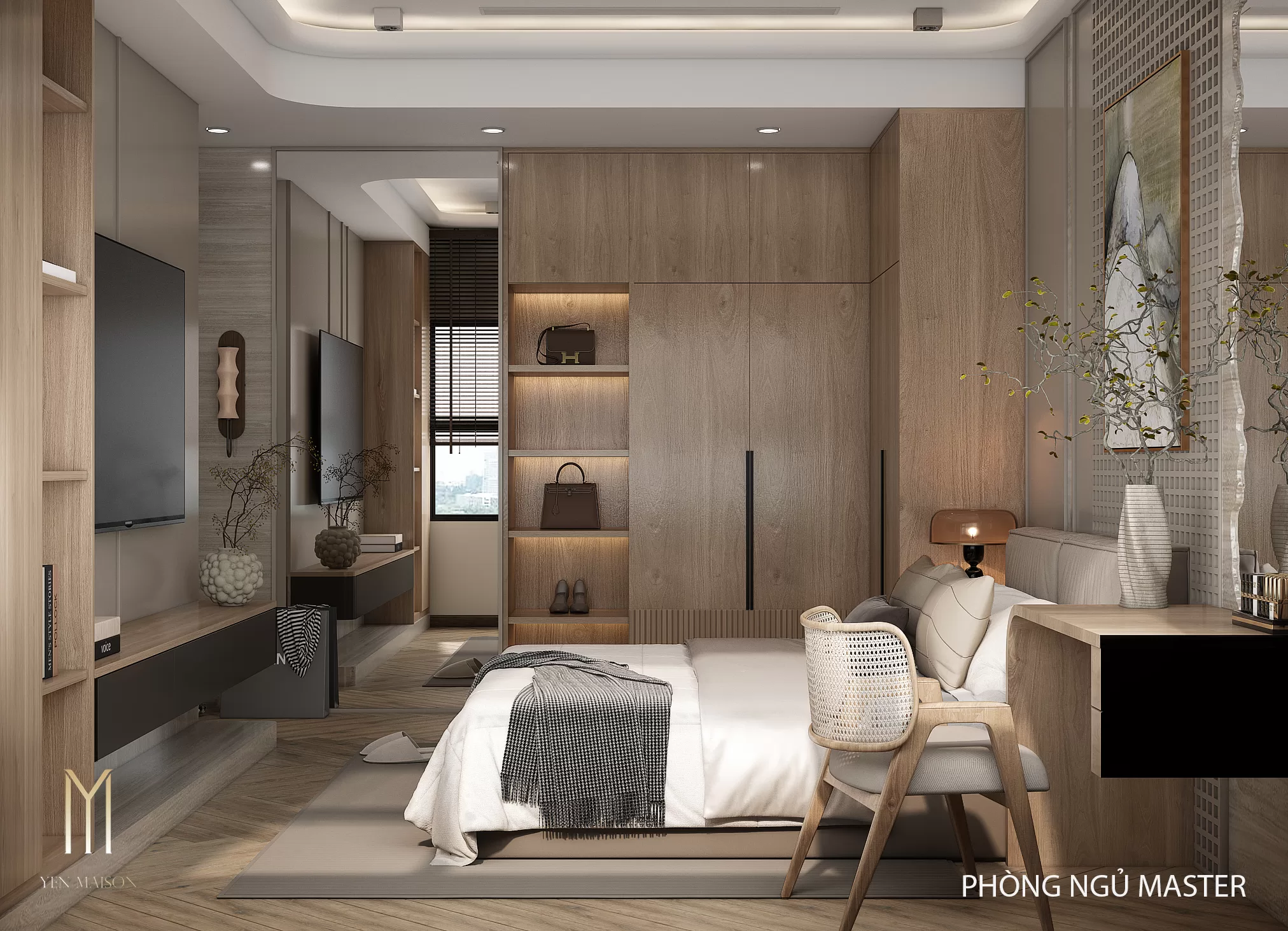 Với phong cách Modern mix Japandi, Yen Maison lựa chọn bảng màu trắng kem kết hợp gỗ sáng để tạo nên một tổng thể nhẹ nhàng và ấm áp. Các chi tiết được tiết chế vừa đủ, để từng góc nhỏ trong nhà đều trở thành khoảng nghỉ dễ chịu sau một ngày bận rộn.